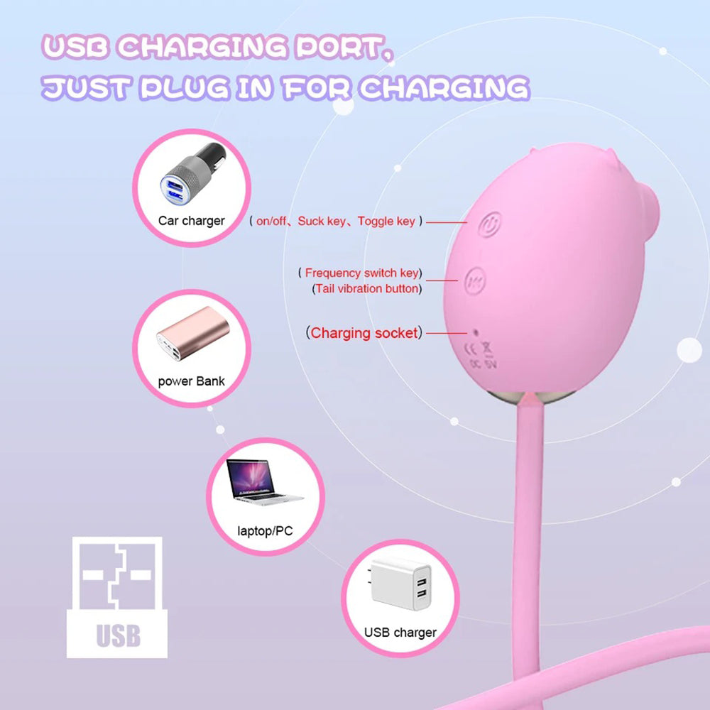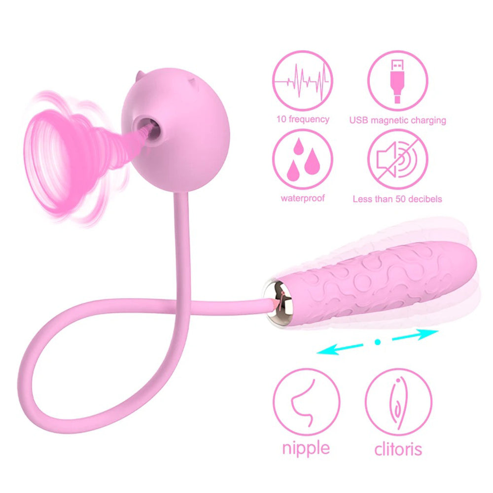 2-in-1 Peppy Pig Clitoral Suction & Multi-Frequency Thrusting Vibrator
